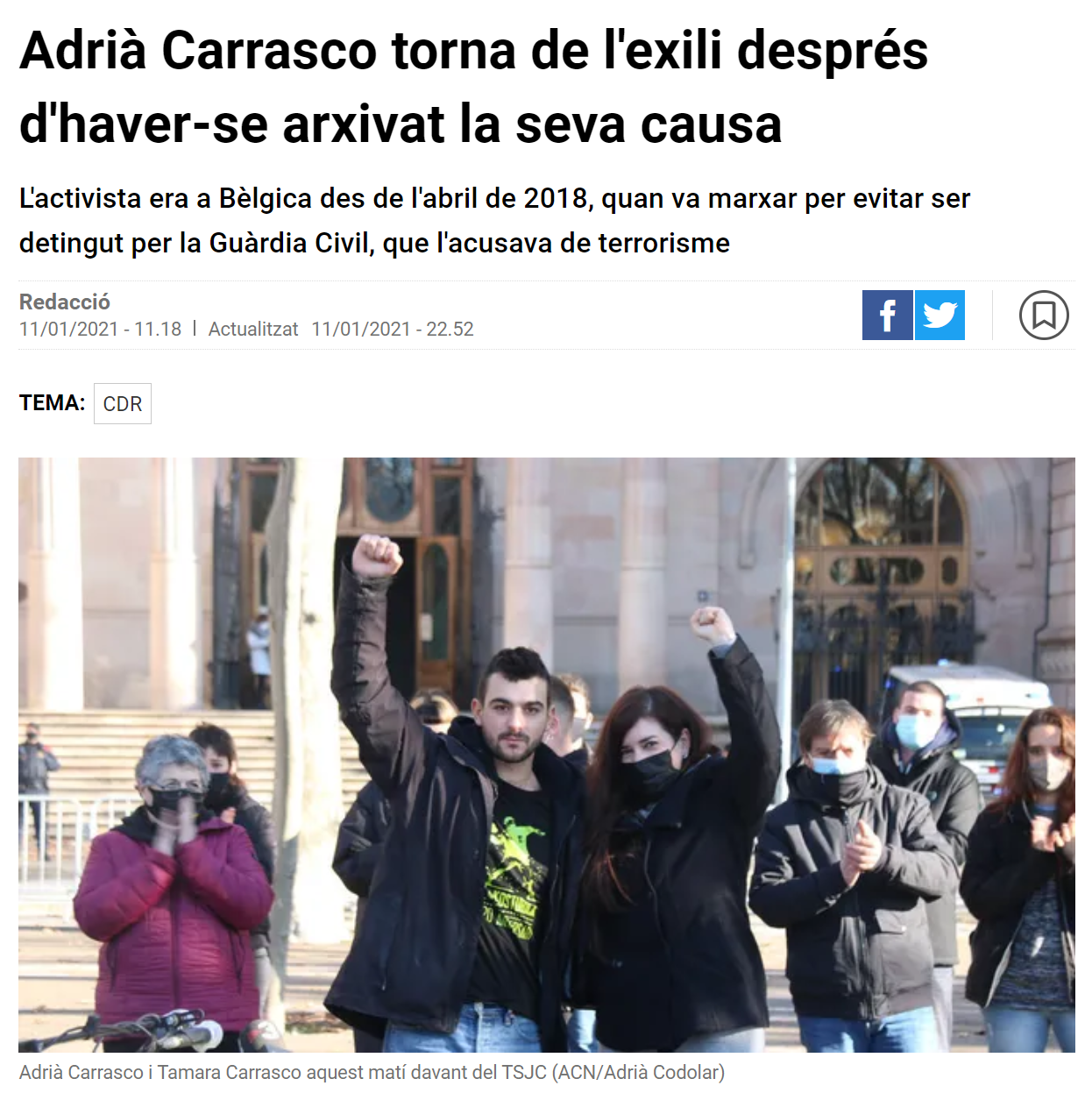 L'11 de gener de 2021 es tancava aquest capítol de la repressió a l'Estat Espanyol.